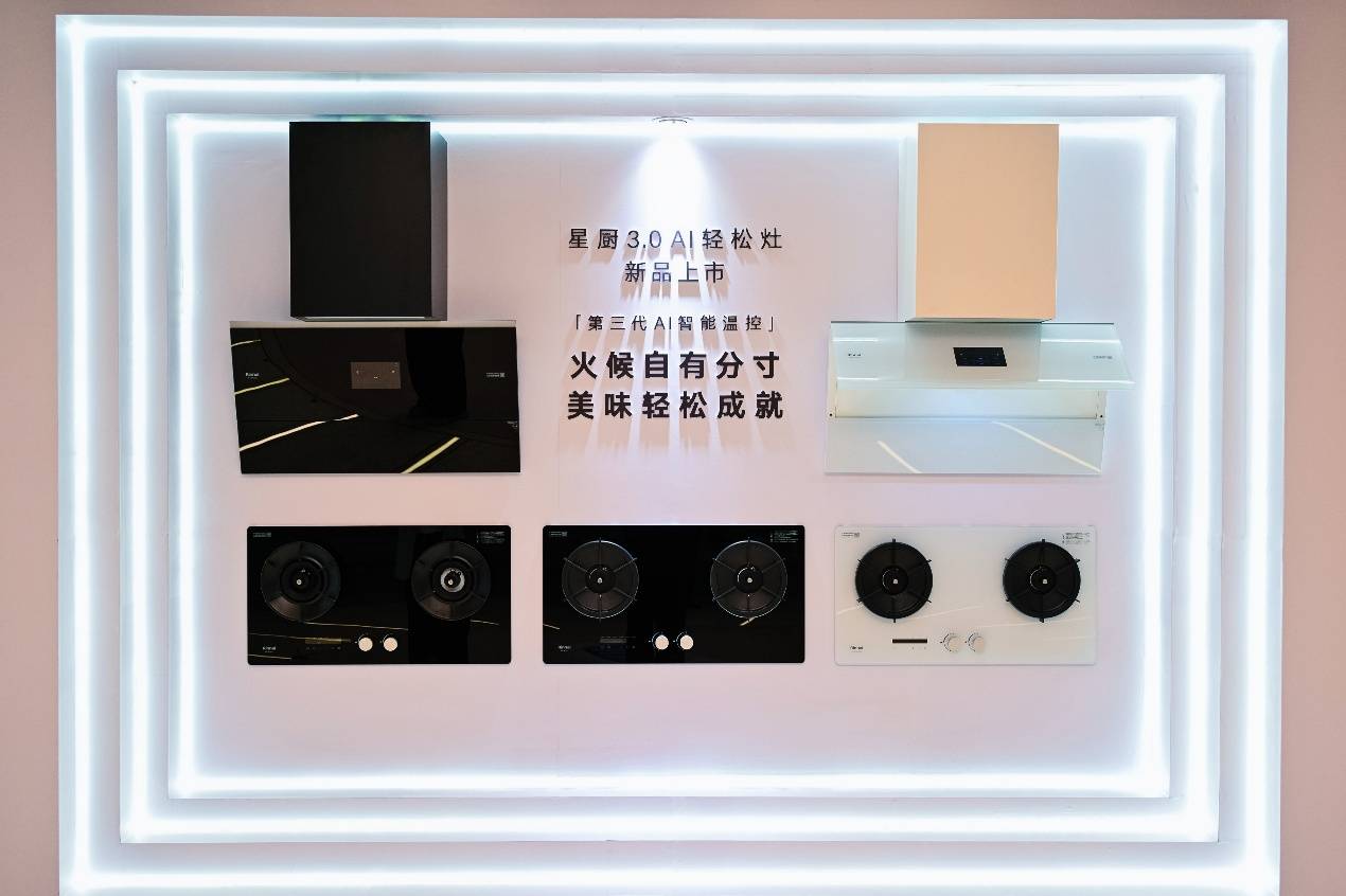 活动现场,朱家桂总裁与北田雄一总经理共同点亮启动球,林内星厨3.0 AI轻松灶新品主题区同步揭幕,标志着星厨3.0 AI轻松灶正式登陆市场。