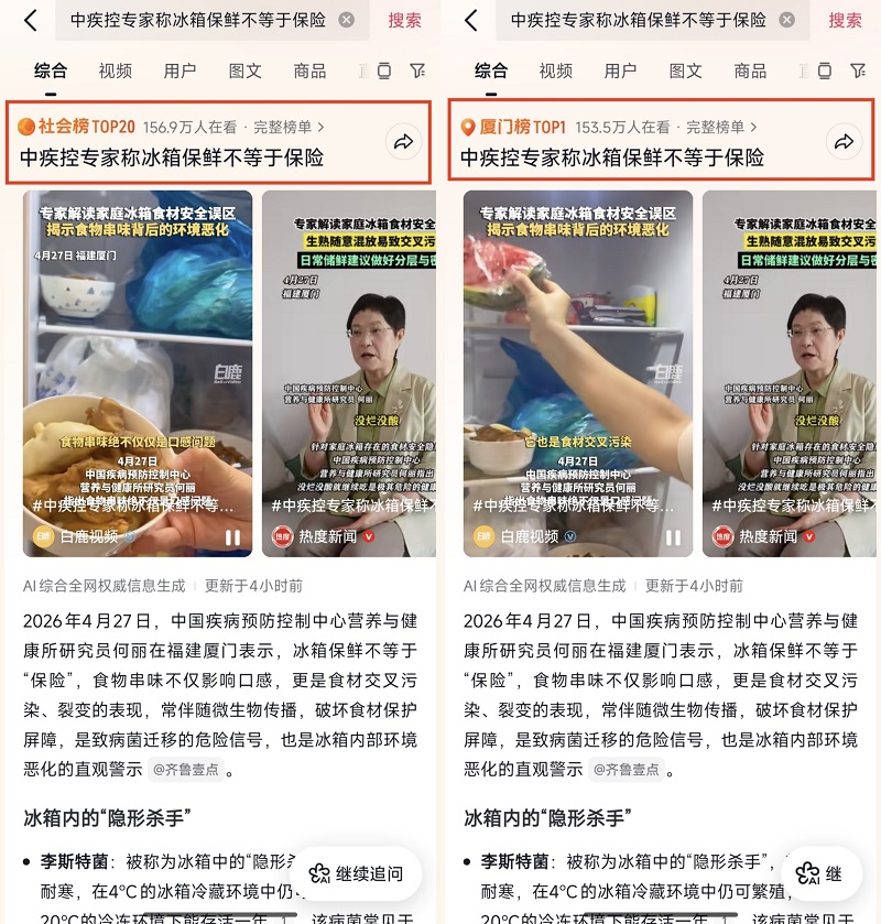正如在直播现场中国疾病预防控制中心营养与健康所科技处处长何丽给出的关于中国家庭 “入口安全” 的核心建议:不仅注重食材本身的洁净,更要聚焦真实存储场景,才能从源头杜绝“病从口入”。而美的冰箱真是基于对中国家庭真实存储场景的深入了解,才带来的全食材原鲜解决方案,不仅让中国家庭吃得健康,还能吃的更鲜。直播结束后,美的冰箱PST+智能净化技术因硬核的技术实力以及中疾控专家的权威输出,完成热点话题打造,相关话题词成功登陆抖音社会榜TOP20、厦门同城榜TOP1,美的冰箱,以硬核科技定义健康新标准。