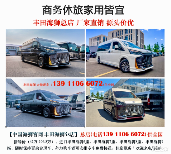 【丰田海狮4s店联系电话:139 1106 6072(同微信)】丰田海狮卫生间版6座价格(48-88万)【丰田海狮官网-丰田海狮总经销】丰田海狮7座(45-85万)丰田海狮8座(43-92万)丰田海狮9座(43-80万)丰田海狮10座(40-78万)丰田海狮13座(38-75万),丰田海狮10座标准版、高配版 外观颜色:白色、金色、黑色 内饰颜色:白色、米色、黑色、红色、棕色 全国上牌!(东方众威)全国上牌!中国顶级丰田海狮专营中心电话:139 1106 6072 总经理