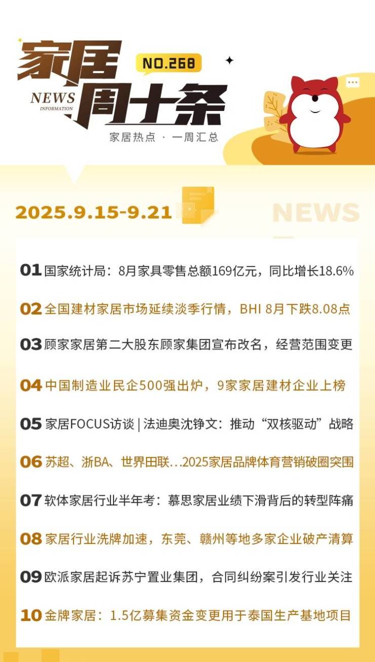 家居周十条 | 8月家具零售总额增长18.6%、顾家家居第二大股东改名、多家企业破产清算…