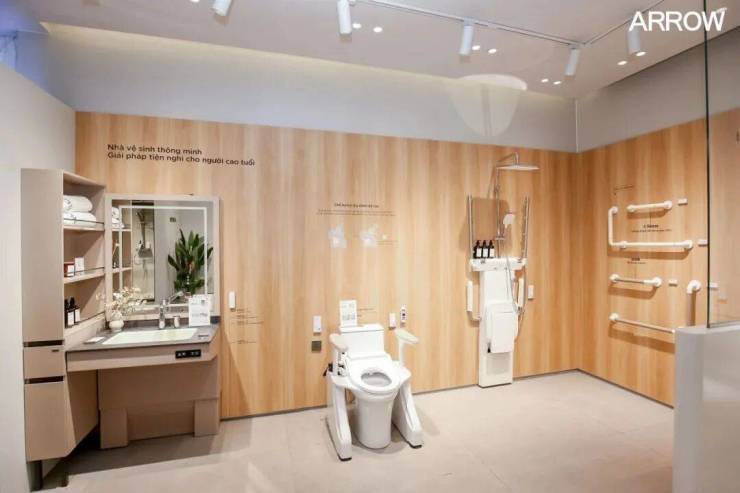 箭牌推出了专为不同群体设计的福祉系列产品,涵盖如厕区、淋浴区等,注重无障碍设计,主要采用特殊的防滑材质和圆润的边角处理,减少受伤风险,并采用智能操控系统,智能马能可自动翻盖冲洗;配套恒温花洒,提升沐浴体验。该系列产品入选了2024年的一份“适老化改造推荐目录”。